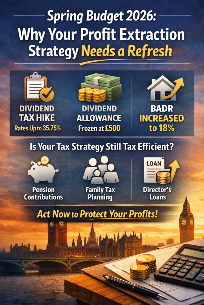 - Director’s Loans: Remember, the Section 455 charge on overdue loans has also mirrored the dividend hike, rising to 35.75%.